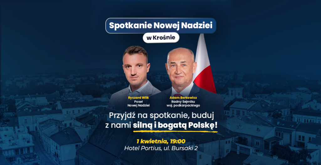 Poseł Konfederacji i Nowej Nadziej, Ryszard Wilk objeżdża Podkarpacie! W dniach 1-2 kwietnia pojawi się na spotkaniach otwartych w Jarosławiu, Krośnie, Przemyślu i Jaśle. W spotkaniach weźmie również udział radny sejmiku woj. podkarpackiego – Adam Berkowicz. Przyjdź na spotkanie, buduj z nami silną i bogatą Polskę!
