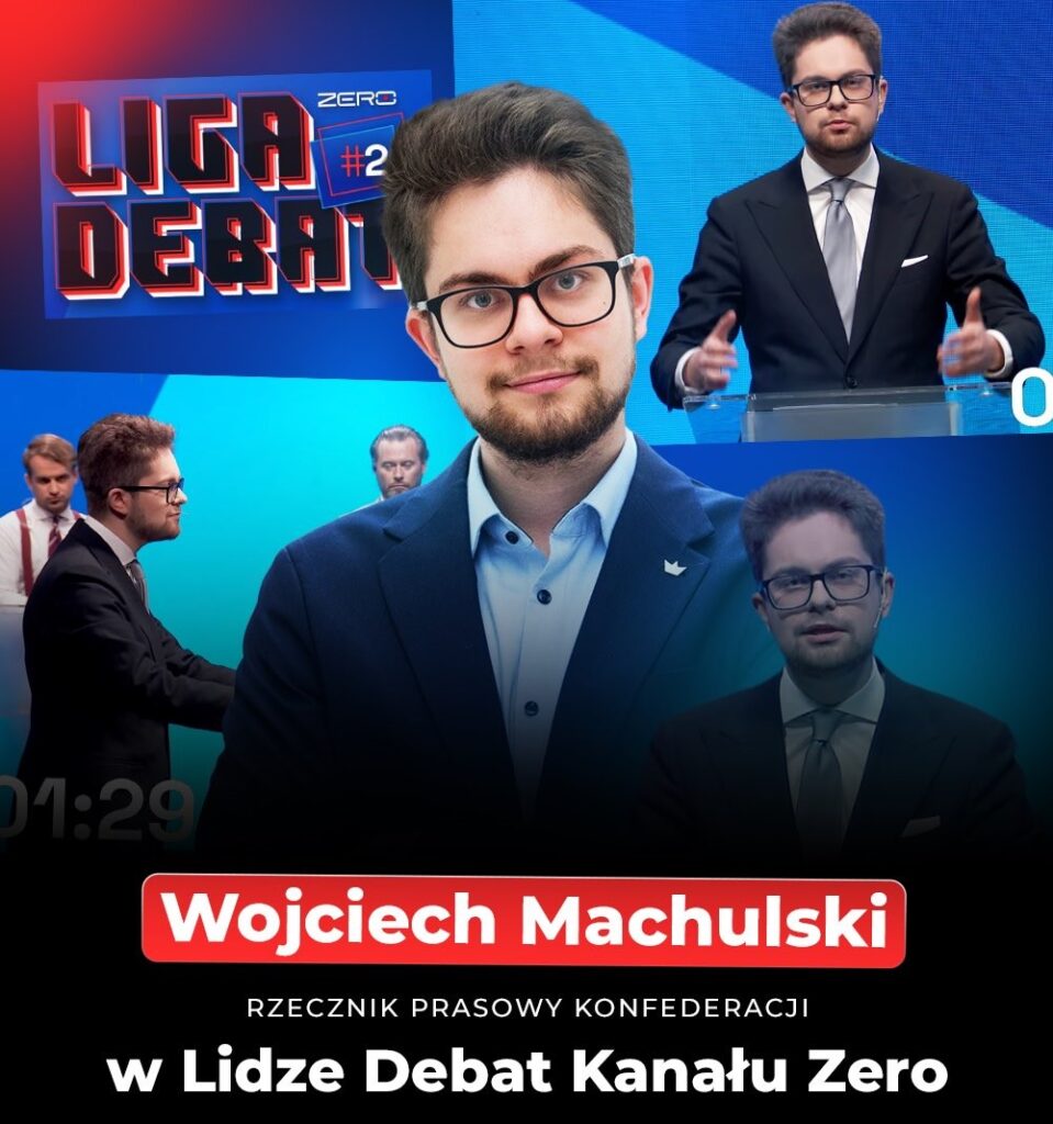 W drugiej odsłonie Ligi Debat organizowanej przez Kanał Zero, Konfederację reprezentował jej rzecznik – Wojciech Machulski. Przedstawiciele wszystkich partii zabierali głos w temacie ochrony zdrowia, Unii Europejskiej i programu SAFE. Były też pojedynki 1 na 1, które według widzów i komentatorów debaty wygrał nasz rzecznik.
