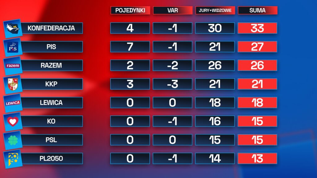 Dzięki świetnemu wystąpieniu Wojciecha Machulskiego, Konfederacja zajmuje pierwsze miejsce w klasyfikacji partii w Lidze Debat Kanału Zero.